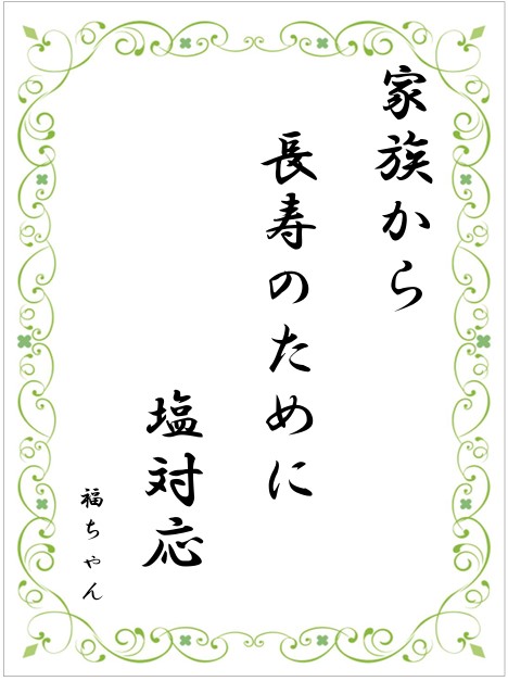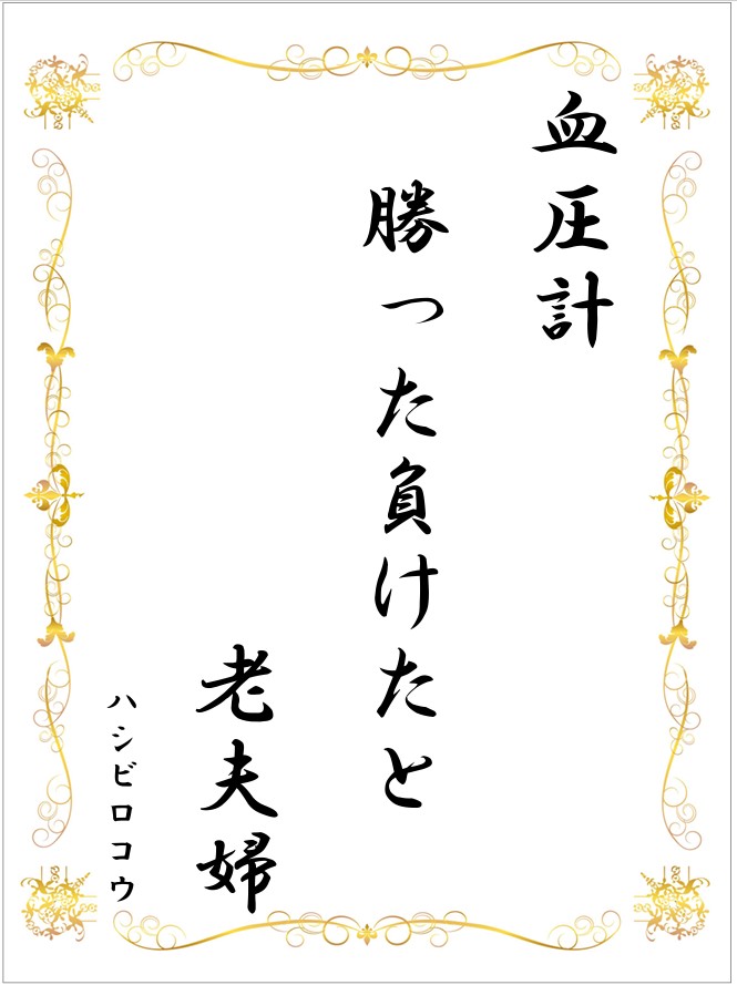 皆様より脳卒中と心臓病の予防に関するたくさんの川柳をご応募頂きました。 誠にありがとうございました。 センター員による厳正な審査により、105作品の中から下記賞を決定致しました。 また、各受賞者にはそれぞれ賞状を郵送にて進呈します。